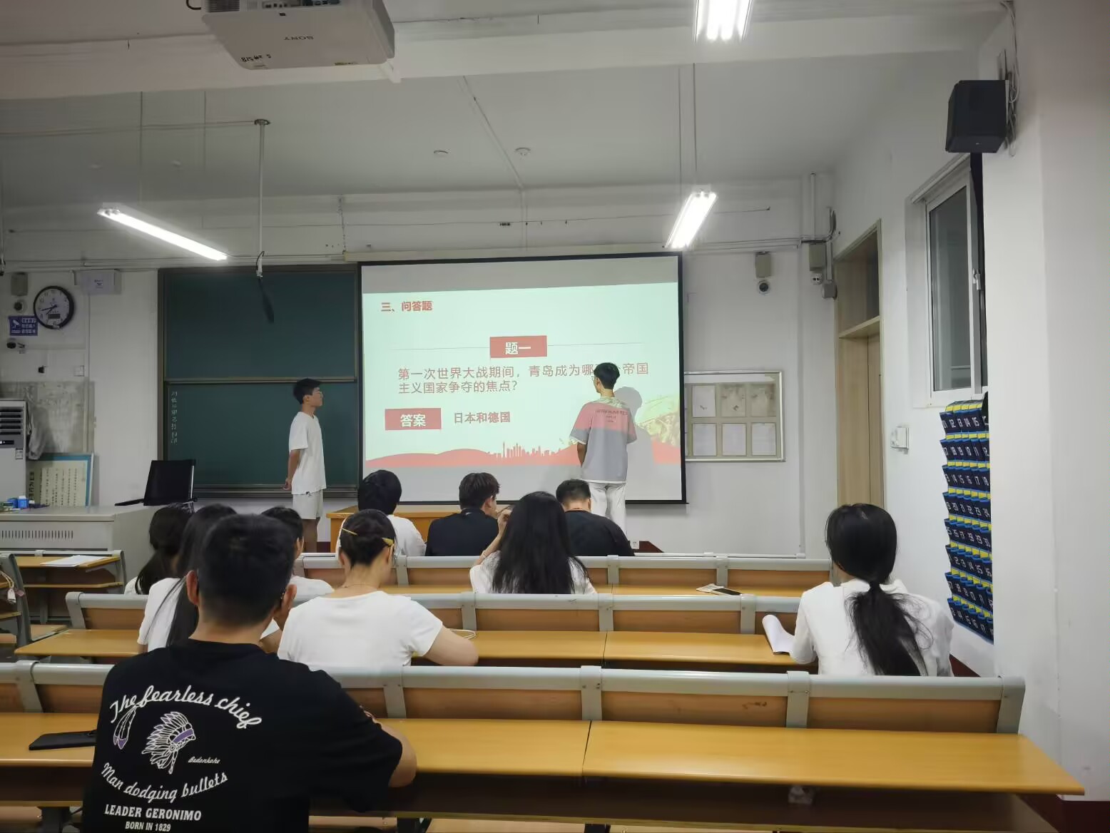 活动伊始,负责人以“红色基因的时代传承”为题致辞,结合青岛一战遗址中的民族觉醒史、孔繁森同志“一腔热血洒高原”的奉献精神展开分享。此次活动的擂台赛题库由学院党史学习教育小组精心打磨,内容涵盖青岛一战遗址的历史背景、战役细节、历史意义,孔繁森同志在聊城工作及援藏岁月中的感人事迹,还有山东地区其他重要红色地标背后的革命历程。比赛分初赛与决赛两个阶段。初赛采用线上限时答题模式,多维度考察同学们的红色历史知识储备,12名选手凭借扎实功底脱颖而出晋级决赛。决赛气氛更为热烈,设必答题、抢答题和模拟题三个环节:必答题环节,选手们对答如流,展现出对红色历史的深刻理解;抢答题环节,主持人一声令下,选手们便眼疾手快按下抢答器;最具亮点的是情景模拟环节,围绕“如果你是解放青岛的战士,如何在敌众我寡的情况下传递重要情报”等问题,选手们灵活应对。经过近三小时激烈比拼,6名同学分获一、二、三等奖,负责人为他们颁发了“红色达人”荣誉证书及包含青岛一战遗址纪念馆文创书签、孔繁森事迹纪念册的“青聊主题”文创大礼包。