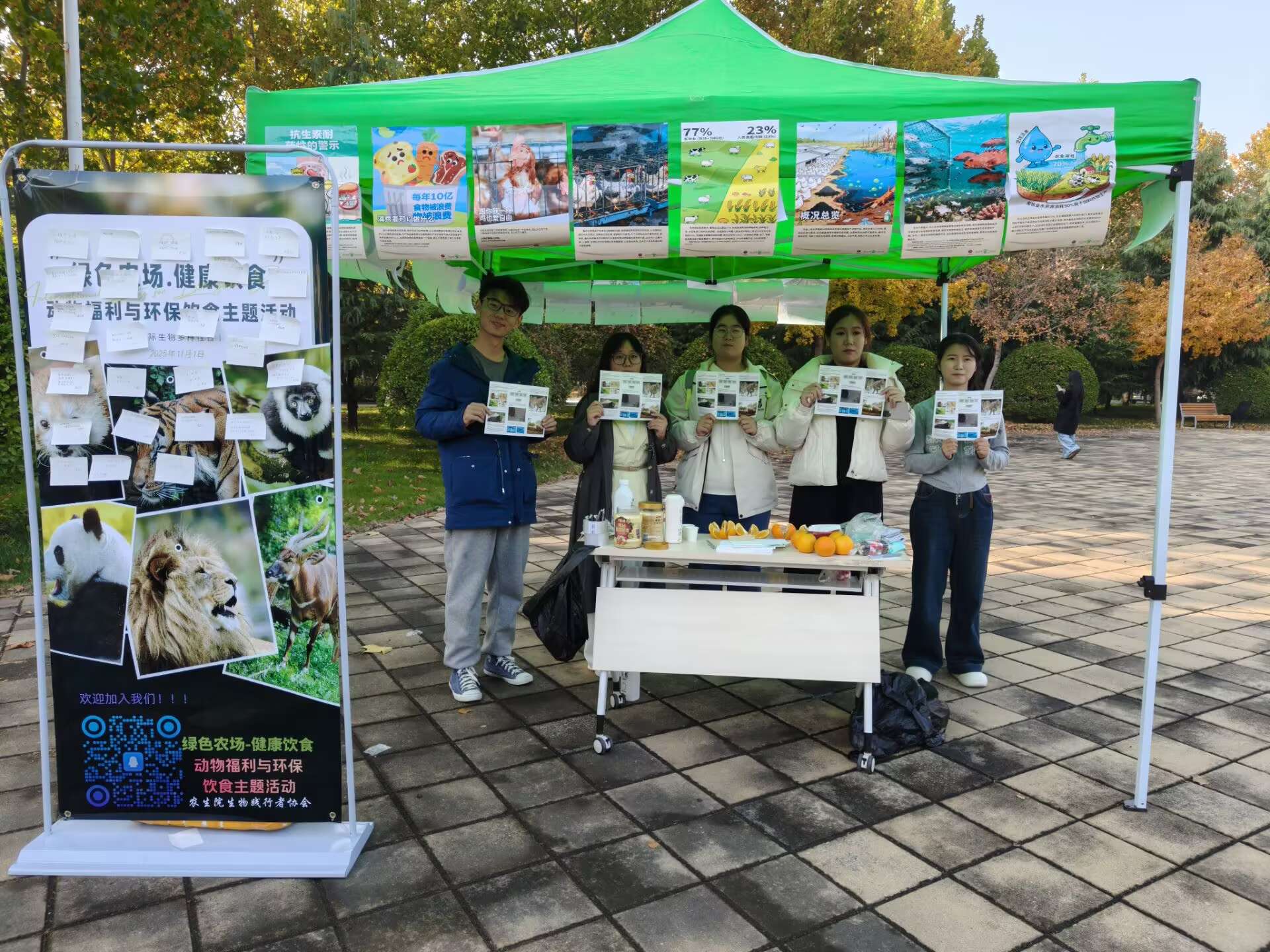 为引导同学们深入了解食物的碳足迹,推动绿色、健康的生活方式,11月8号,yl7703永利集团于东校区逸夫图书馆南侧广场成功举办“地球绿色农民—农场动物与环境保护”公益活动。