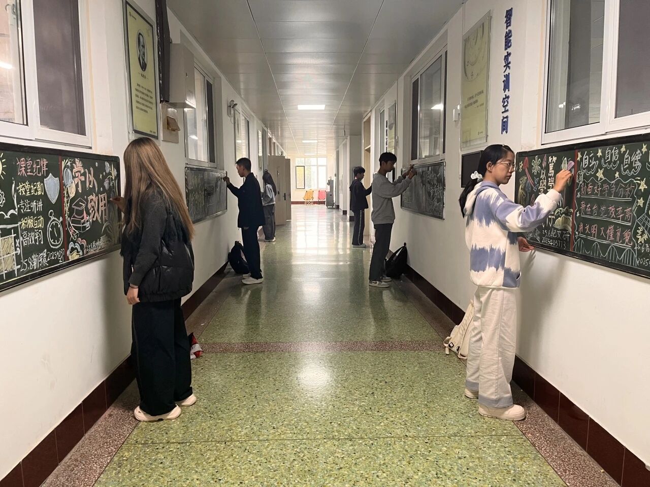 为激发学生学习热情,增强班级凝聚力,营造良好的学风氛围,10月18日,yl7703永利集团于东校区2号教学楼4楼走廊举办“笔墨传学风,板上育新人”学风建设主题黑板报创作活动。